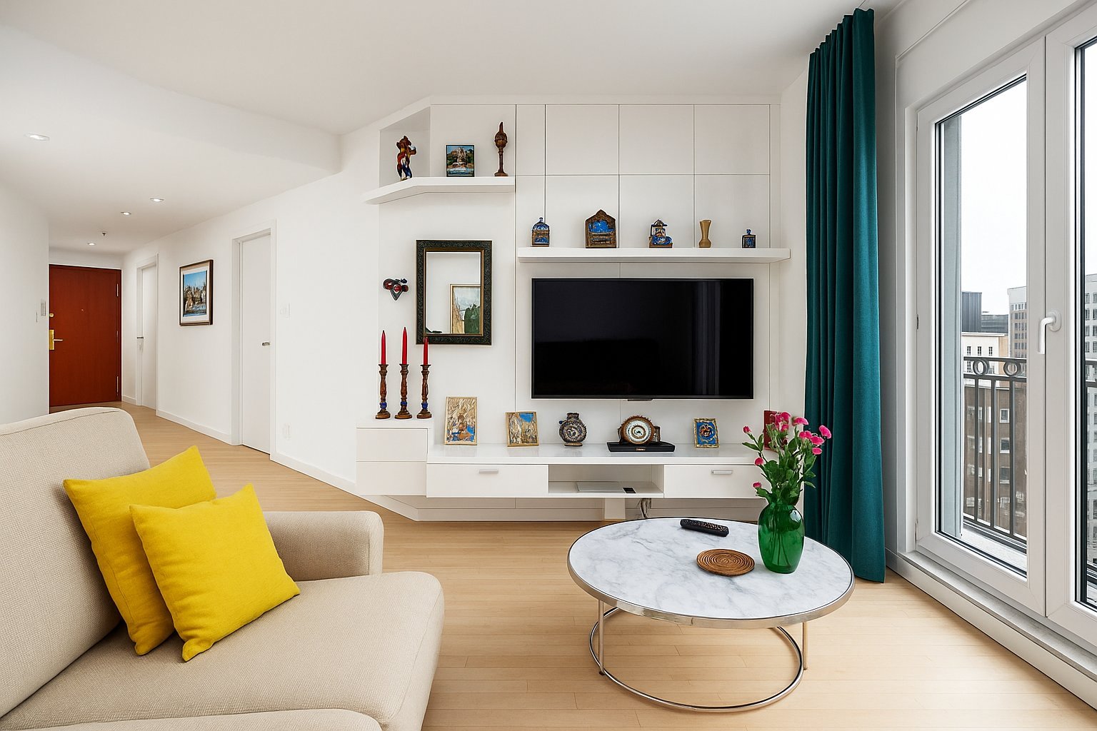 Appareils électroménagers : Réfrigérateur Sub Zero, Table de cuisson Gaggenau, Cuisinière Miele, Lave-vaisselle Miele, Hotte de cuisine Miele, Filtre à eau dans la cuisine et la salle de bain. Luminaires, Rideaux et stores, Lit escamotable, Meuble TV sur mesure avec étagères intégrées et Bibliothèque personnalisée (salon), Haut-parleurs (Boss dans le salon), Cheminée électrique et Toilettes Toto (deuxième salle de bain) Certains meubles peuvent être achetés séparément.